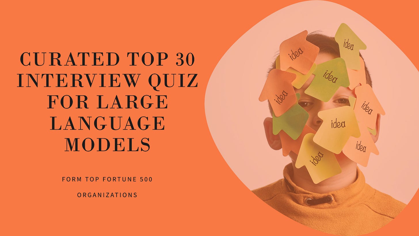 Top 30 curated Interview Quiz for Large Language Models asked in Fortune 500 organizations.